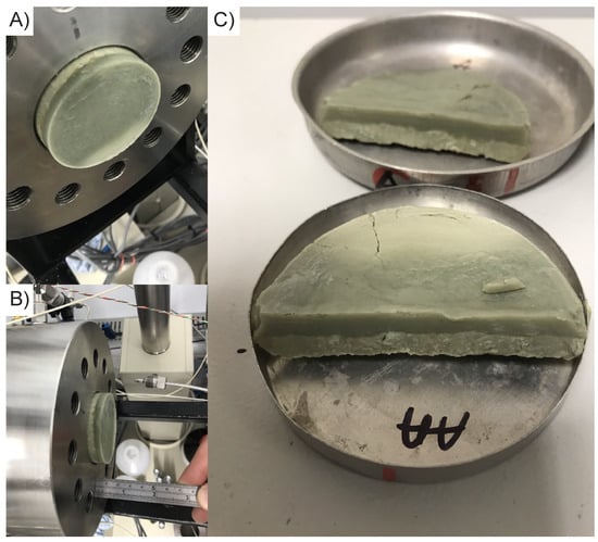 | Composition | Sample Length (mm) | Void Length (mm) | Sample Diameter (mm) | Sample Weight (g) | Bulk Density (kg/m) | Moisture Content | Fluid Pressure (kPa) | Test Duration (Days) |