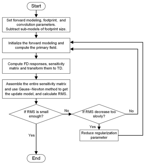 - Cox, L.H.; Zhdanov, M.S. Advanced computational methods for rapid and rigorous 3D inversion of airborne electromagnetic data. Commun. Comput. Phys. 2008, 3, 160–179. [Google Scholar]