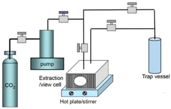 Inductively coupled plasma-optical emission spectroscopy (ICP-AES) analysis was performed on iCAP 6300 DV (Thermo Scientific, Austin, TX, USA) and inductively coupled plasma-mass spectroscopy (ICP-MS) analysis was performed on Agilent 7700 (Agilent Technologies, Santa Clara, CA, USA). The sc-CO2 syringe pump is from ISCO 260D (Teledyne ISCO, Lincoln, NE, USA) and the extraction system is shown on Figure 1. The extraction cell is placed on top of a hot plate with stirring and is connected to the output of the syringe pump with a pressure indicator. The output of the reaction cell is connected to a needle valve, which can control the flow rate, and is then passed through a trap solution.