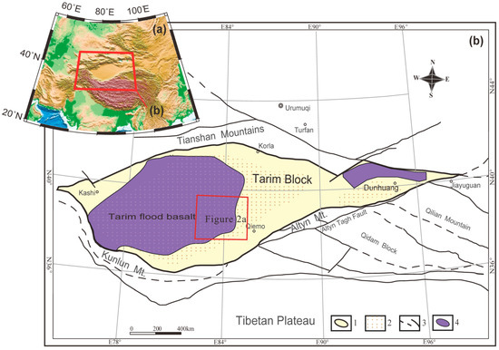 - Yang, S.; Chen, H.; Li, Z.; Li, Y.; Yu, X.; Li, D.; Meng, L. Early Permian Tarim Large Igneous Province in northwest China. Sci. China Earth Sci. 2013, 56, 2015–2026. [Google Scholar] [CrossRef]