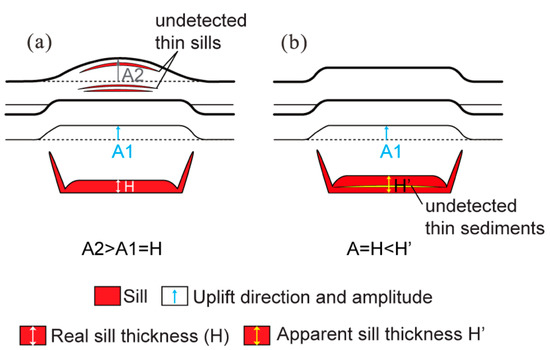 - Mark, N.; Schofield, N.; Gardiner, D.; Holt, L.; Grove, C.; Watson, D.; Alexander, A.; Poore, H. Overthickening of sedimentary sequences by igneous intrusions. J. Geol. Soc. 2019, 176, 46–60. [Google Scholar] [CrossRef]