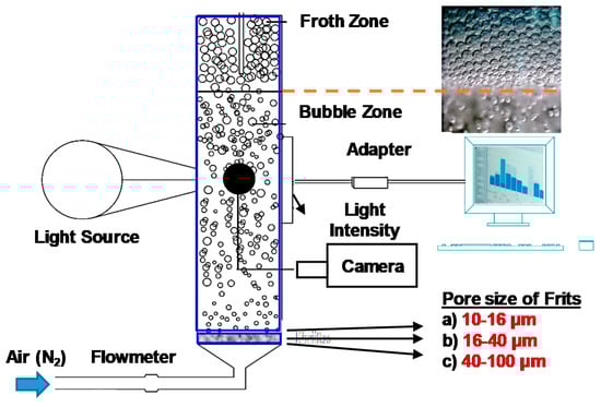- Vazirizadeh, A.; Bouchard, J.; Chen, Y. Effect of particles on bubble size distribution and gas hold-up in column flotation. Int. J. Miner. Process. 2016, 157, 163–173. [Google Scholar] [CrossRef]
