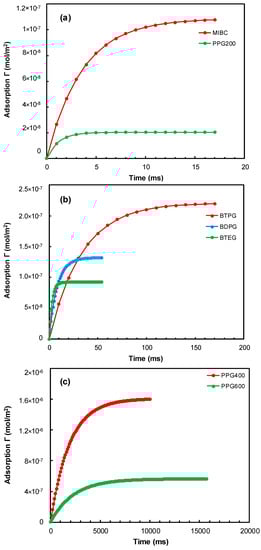 | PPG 400 | HO(C3H6O)6.5H | 9.52 × 10−6 | 0.22 | 1.60 × 10−6 | 0.16 | 4.52 × 10−10 | 5.00 × 10−4 | 7.53 × 104 |
