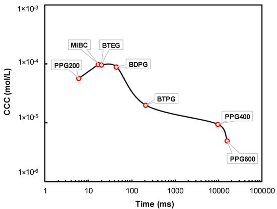 | PPG 600 | HO(C3H6O)10H | 5.00 × 10−6 | 0.19 | 5.61 × 10−7 | 0.12 | 3.51 × 10−10 | 5.00 × 10−4 | 6.54 × 104 |
