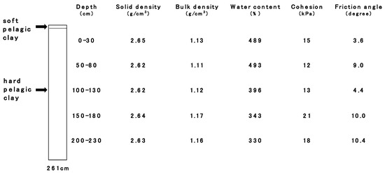 Example geotechnical properties of siliceous deep-sea sediments from shallow to deep layers in the Japanese FN contract area in the Clarion-Clipperton Fracture Zone (CCZ), North Pacific, about 5200 m deep [77].