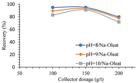 Influence of different Na-Oleat dosages on boron mineral recovery in various pHs (reverse flotation) [40].