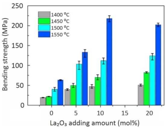 Bending strength versus La2O3content at differentsintering temperatures [].