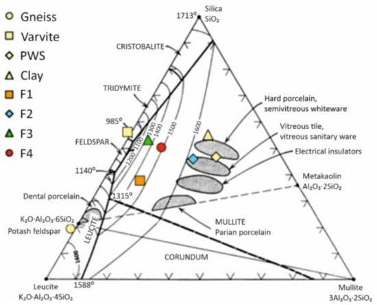 - De Medeiros, P.S.S.; Lira, H.D.L.; Rodriguez, M.A.; Menezes, R.R.; Neves, G.D.A.; Santana, L.N.D.L. Incorporation of quartzite waste in mixtures used to prepare sanitary ware. J. Mater. Res. Technol. 2019, 8, 2148–2156. [Google Scholar] [CrossRef]