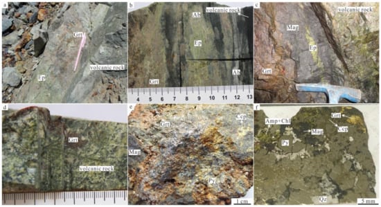 Representative alteration and mineralization paragenesis of the Laoshankou deposit (modified from [26]).