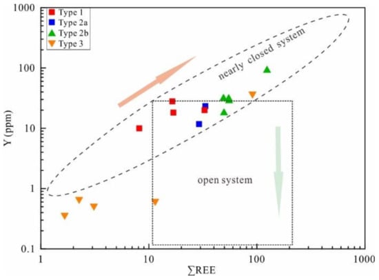Scatter diagrams of yttrium (Y) versus the total REEs for garnets in the Laoshankou deposit (modified after [16]).