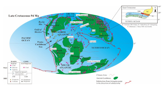 - Fang, X.; Song, C.; Yan, M.; Zan, J.; Liu, C.; Sha, J.; Zhang, W.; Zeng, Y.; Wu, S.; Zhang, D. Mesozoic litho- and magneto-stratigraphic evidence from the central Tibetan Plateau for megamonsoon evolution and potential evaporites. Gondwana Res. 2016, 37, 110–129. [Google Scholar] [CrossRef]