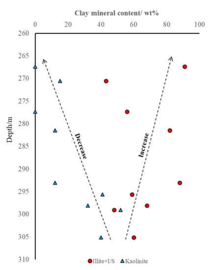 In the equation, Bk is the B content of kaolinite (ppm); B is the measured content (ppm); Xi, Xm, Xk are the relative contents of illite, montmorillonite, and kaolinite in clay minerals, respectively; SP is the paleosalinity (‰); and C1 and C2 are constants. According to the relationship between B content of kaolinite in modern sedimentary water and salinity, C1 and C2 are 1.28 and 0.11, respectively [57].