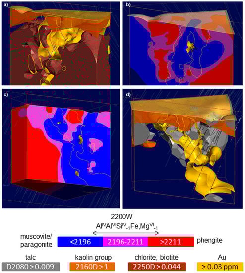 - Haest, M.; Cudahy, T.; Laukamp, C.; Gregory, S. Quantitative Mineralogy from Infrared Spectroscopic Data. II. Three-Dimensional Mineralogical Characterization of the Rocklea Channel Iron Deposit, Western Australia. Econ. Geol. 2012, 107, 229–249. [Google Scholar] [CrossRef]