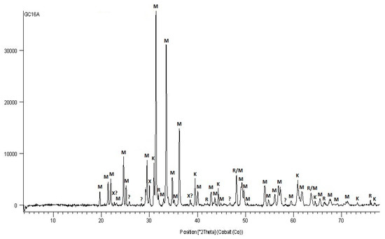 Nylon sieves of 2.0 to 0.063 mm MESH (Laboratory of Clay Raw Materials, Faculty of Geology, University of Warsaw, Warsaw, Poland)) were used for gravitational separation of the material according to the Wenthworth classification (1922) [] and, for the statistical analysis, the open source GRADISTAT v.5.11 [] (Laboratory of Clay Raw Materials, Faculty of Geology, University of Warsaw, Warsaw, Poland) and a logarithmic method was applied.