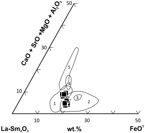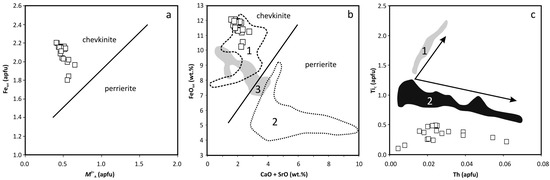 - Macdonald, R.; Bagiński, B.; Kartashov, P.; Zozulya, D.; Dzierźanowski, P. Chevkinite-group minerals from Russia and Mongolia: New compositional data from metasomatites and ore deposits. Mineral. Mag. 2012, 76, 535–549. [Google Scholar] [CrossRef]