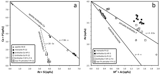 - Zozulya, D.; Lyalina, L.; Macdonald, R.; Bagiński, B.; Savchenko, Y.; Jokubauskas, P. Britholite group minerals from REE-rich lithologies of Keivy alkali granite-nepheline syenite complex, Kola Peninsula, NW Russia. Minerals 2019, 9, 732. [Google Scholar] [CrossRef]