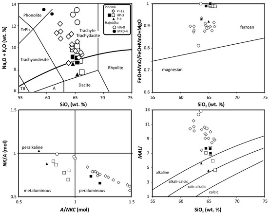 - Frost, B.R.; Frost, C.D. A geochemical classification for feldspathic igneous rocks. J. Petrol. 2008, 49, 1955–1969. [Google Scholar] [CrossRef]