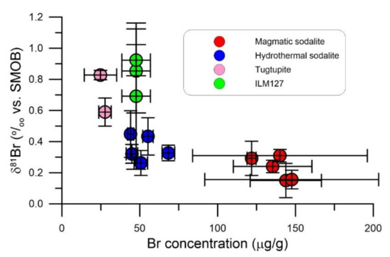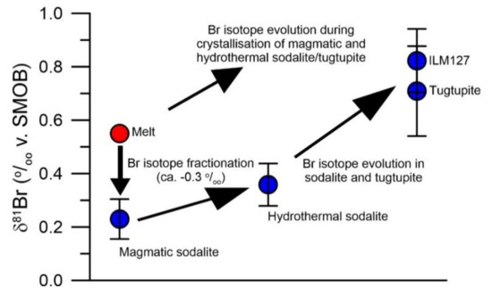 Eggenkamp, H.G.M.; Marks, M.A.W.; Louvat, P.; Markl, G. Bromine Isotope Variations in Magmatic and Hydrothermal Sodalite and Tugtupite and the Estimation of Br Isotope Fractionation between Melt and Sodalite. Minerals 2021, 11, 370. https://doi.org/10.3390/min11040370