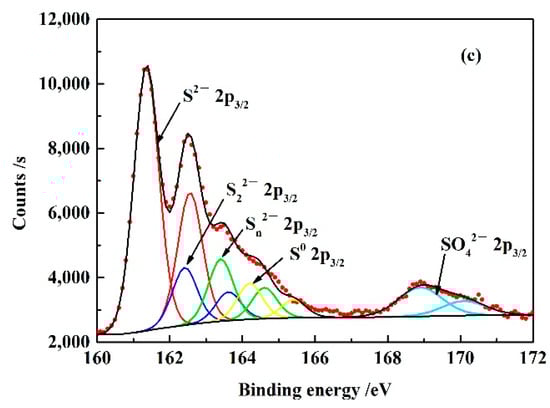 The S speciation transformations on the chalcopyrite surfaces were analyzed by X-ray photoelectron spectroscopy (XPS), which was carried out using the EscaLab Xi+ model, and the spectra were recorded with a constant pass energy of 20 eV and 0.1 eV/step using an Al K α X-ray source. The obtained XPS spectra were fitted by using Thermo Avantage 5.52 software. During the fitting process, the binding energies of the spectra were calibrated by the C 1s level at 284.8 eV, the background was achieved by using the Shirley method, and the spectrum was fitted by the Gauss–Lorentz line (SGL) function.