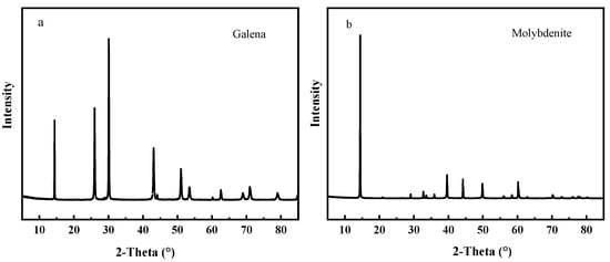 XRD spectra of (a) galena and (b) molybdenite sample.