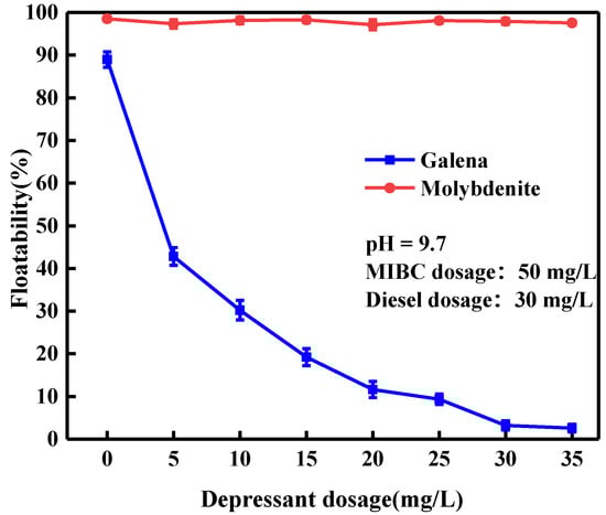 Floatability of galena and molybdenite as a function of depressant dosage.