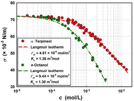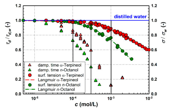 - Chang, C.H.; Franses, E.I. Dynamic Tension Behavior of Aqueous Octanol Solutions under Constant-Area and Pulsating-Area Conditions. Chem. Eng. Sci. 1994, 49, 313–325. [Google Scholar] [CrossRef]