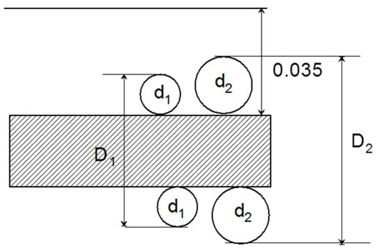 Almost similar or insignificantly different values observed for d50 and d90, as well as a 2.3% difference for d10, in Table 4 show that any particle breakage at this speed was virtually owing to nipping of particle edges as they got hit by beaters and bombarded on the crusher casing and against each other. The impact force was not strong enough to cause particle fracture. This is in agreement with what Vogel and Peukert [14] observed—that in such scenarios, high local stresses cause minor damages to the particles in the form of broken edges or abrasion, albeit with no significant fragmentation occuring. In addition to that, a significant number of particles go through uncomminuted at low speed as the periods between the impacts are longer than the average time spent by particles in the collision path. This is derived by referring to the relevant equipment geometry shown in Figure 1 and applying newtonian physics to estimate the time a particle is within the collision space. The time the particle spends in the space where it can collide with the impeller can be calculated by analysing the distance from the point of exit from the funnel to the upper part of the bar. The time duration of free fall can be calculated as: