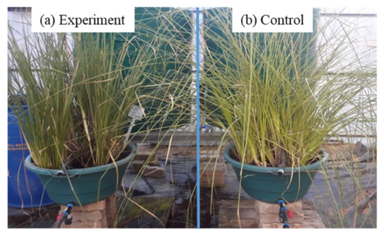 The maximum determined HRT was 30 days, and during that period, the inlet flow rate and outlet flow rate were monitored daily to ensure a steady flow of water in and out of the wetland. The flow rate was maintained low (3 L/Day) and the HRT (30 days) long in order to allow the water to spend more time in the wetland cells, thereby improving the performance of the wetland, since the studies of Conn and Fiedler [50], Ewemoje et al. [51], and Piñeyro et al. [52] revealed that the performance of the wetland is improved by high hydraulic retention time (HRT). At the end of the experiment (just after 30 days), the plants were harvested from both wetlands (treatment cell and control) for the assessment of the uptake and translocation of chemical species.