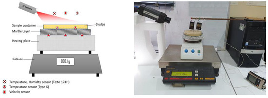 The PHWWC sample to be dried is placed on a conductive layer (marble layer), which is heated on the other side by a heating plate. The supplied heat is used both to heat the material and to feed the vaporization of water contained in the material.