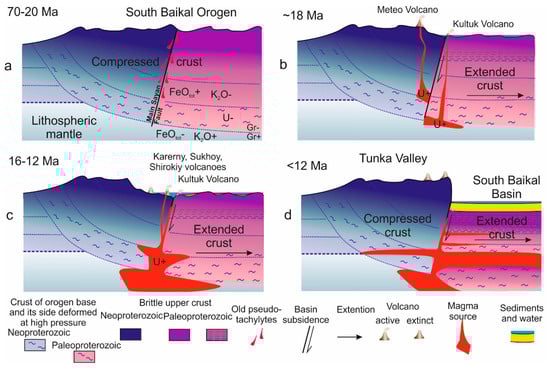 - Rasskazov, S.V. Magmatism of the Baikal Rift System; Siberian Publishing Company Science: Novosibirsk, Russia, 1993. (In Russian) [Google Scholar]