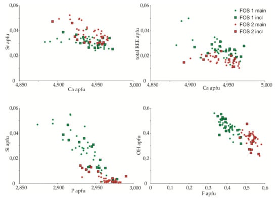 - Chakhmouradian, A.R.; Reguir, E.P.; Zaitsev, A.N.; Couëslan, C.; Xu, C.; Kynický, J.; Mumin, A.H.; Yang, P. Apatite in carbonatitic rocks: Compositional variation, zoning, element partitioning and petrogenetic significance. Lithos 2017, 274, 188–213. [Google Scholar] [CrossRef]