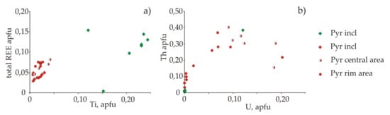 - Yaroshevsky, A.; Bagdasarov, Y.A. Geochemical Variety of Pyrochlore-Group Minerals. Geokhimiya 2008, 46, 1245–1266. [Google Scholar]