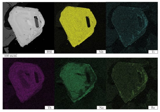 - Epshtein, E.M.; Danil’chenko, N.A.; Nechelyustov, G.N. Hypogenic Bariopyrochlore from a Carbonatite Complex. Zap. Vseross. Mineral. 1991, 120, 74–79. [Google Scholar]
