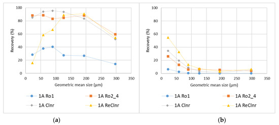 24]. It is important to note that the relative performance for 1A Ro1 highlights lower recoveries since it is a single flotation cell. Characterization of the 1A Ro1 performance is very important to the operation, as the tail produced by the flotation cell reports directly to final tail.