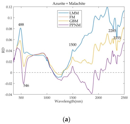 - Note that for the mixture of azurite and malachite, the RD curves of the FM and GBM in Figure 7a coincided because the abundances estimated by them were the same due to the parameter .