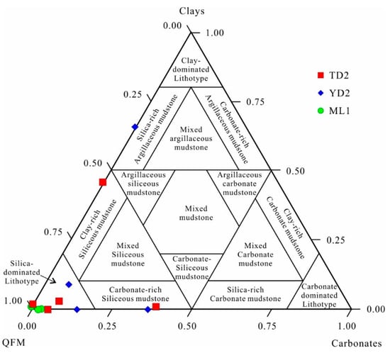 The lithotype classification based on ternary diagram of mineralogical composition from Heituao shale samples in Tadong low uplift. Modified after Glaser et al., 2014 [29].