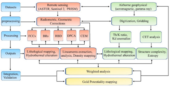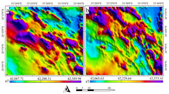 - Elkhateeb, S.O.; Abdellatif, M.A.G. Delineation potential gold mineralization zones in a part of Central Eastern Desert, Egypt using Airborne Magnetic and Radiometric data. NRIAG J. Astron. Geophys. 2018, 7, 361–376. [Google Scholar] [CrossRef]
