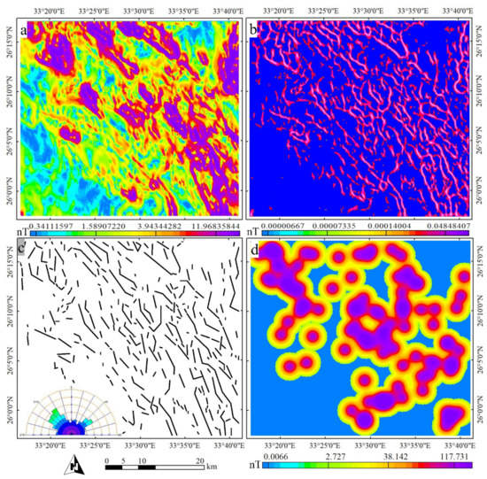 - Holden, E.J.; Dentith, M.; Kovesi, P. Towards the automated analysis of regional aeromagnetic data to identify regions prospective for gold deposits. Comput. Geosci. 2008, 34, 1505–1513. [Google Scholar] [CrossRef]
