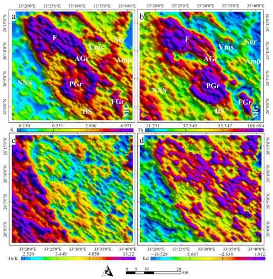 - Youssef, M.A.S.; Elkhodary, S.T. Utilization of airborne gamma ray spectrometric data for geological mapping, radioactive mineral exploration and environmental monitoring of southeastern Aswan city, South Eastern Desert, Egypt. Geophys. J. Int. 2013, 195, 1689–1700. [Google Scholar] [CrossRef]