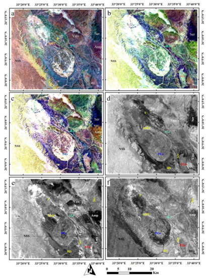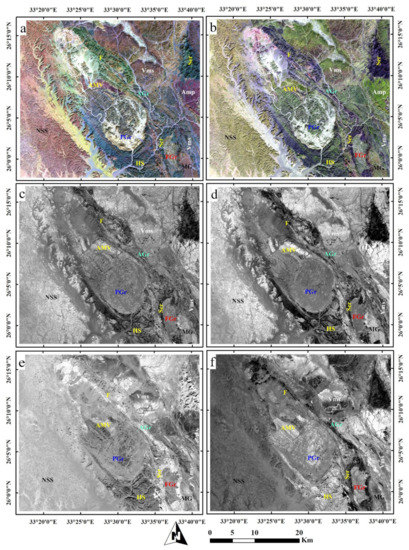 - Hamimi, Z.; Hagag, W.; Kamh, S.; El-Araby, A. Application of remote-sensing techniques in geological and structural mapping of Atalla Shear Zone and Environs, Central Eastern Desert, Egypt. Arab. J. Geosci. 2020, 13. [Google Scholar] [CrossRef]