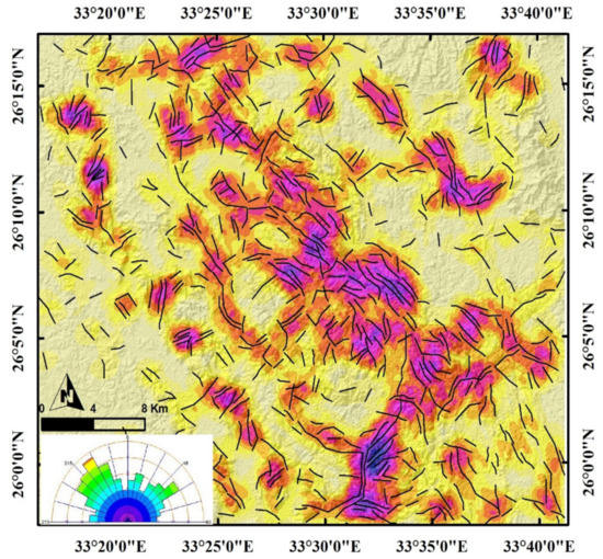 - Masoud, A.; Koike, K. Applicability of computer-aided comprehensive tool (LINDA: LINeament Detection and Analysis) and shaded digital elevation model for characterizing and interpreting morphotectonic features from lineaments. Comput. Geosci. 2017, 106, 89–100. [Google Scholar] [CrossRef]
