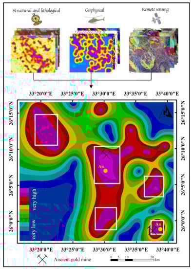 - The interrelated datasets conclude three potential zones that need further investigation to assign their economic potential. These nominated zones have the same criteria and weight as the already confirmed gold mines within the study area.