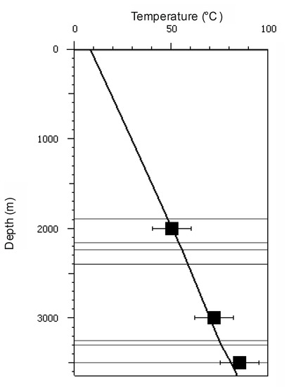 - Sweeney, J.J.; Burnham, A.K. Evaluation of a simple model of vitrinite reflectance based on chemical kinetics. AAPG Bull. 1990, 74, 1559–1570. [Google Scholar]