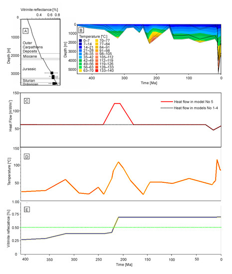 - Geršlová, E.; Goldbach, M.; Geršl, M.; Skupien, P. Heat flow evolution, subsidence and erosion in Upper Silesian Coal Basin, Czech Republic. Int. J. Coal Geol. 2016, 154–155, 30–42. [Google Scholar] [CrossRef]
