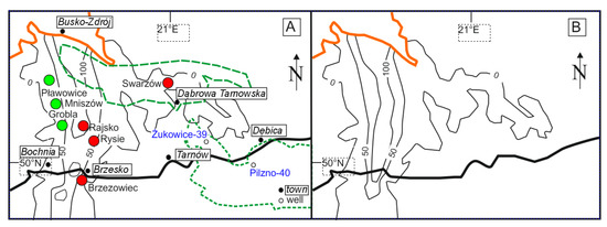 - Oszczypko, N. Development of the Carpathians Foredeep in Miocene. Przegląd Geol. 2001, 49, 717–723, (In Polish with English Summary). [Google Scholar]