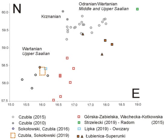 - Czubla, P.; Sokołowski, R.J. Did the Baltic Ice Stream Exist during the Late Saalian? New Data from the Northern Wielkopolska and Eastern Pomerania Regions, Poland. In Proceedings of the International Field Symposium of the INQUA PeriBaltic Working Group (Greifswald 2019), Postdam, Germany, 19 January 2019. [Google Scholar] [CrossRef]