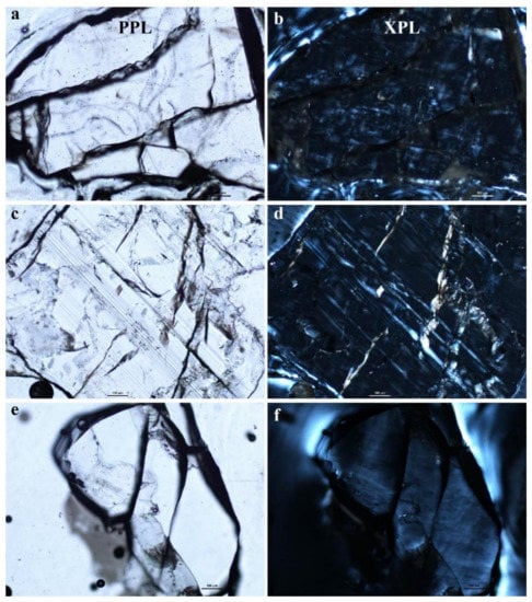 - Deer, W.A.; Howie, R.A.; Zussman, J. An Introduction to the Rock-Forming Minerals, 2nd ed.; John Wiley: New York, NY, USA, 1992. [Google Scholar]