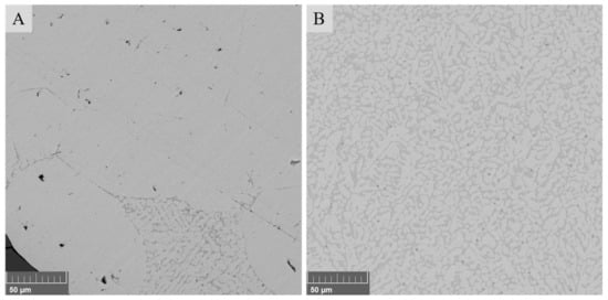 The concentrations of copper in metal alloy and matte are presented in Figure S2 (Supplementary Materials). Copper concentration was much lower compared to nickel and cobalt, between 2 wt.% and 11 wt.% depending on the mixture. Copper concentration in the metal alloy decreased with an increasing amount of battery scrap in the starting mixture. This trend was not that evident in the sulfide matte. The highest concentration of copper in the matte was reached in the system with Ni-concentrate. It is worth noting that the standard deviations of copper concentration in the matte were higher compared to the standard deviations of nickel and cobalt concentrations, because copper was mostly found as Cu-sulfides in the darker gray net structure presented in Figure 3B.