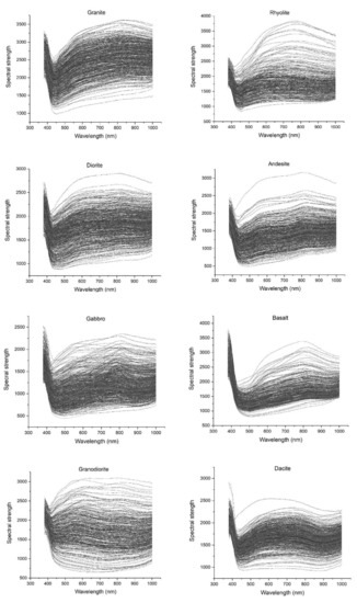 - Ganesh, U.K.; Kannan, S.T. Creation of Hyper Spectral Library and Lithological Discrimination of Granite Rocks Using SVCHR -1024: Lab Based Approach. J. Hyperspectral Remote. Sens. 2017, 7, 168–177. [Google Scholar]