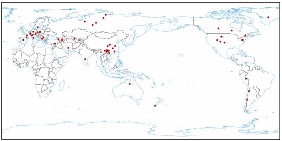 Tl-(bearing) deposits occurrence in the world (modified from [6,7]).